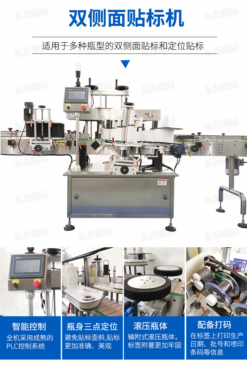 全機(jī)采用的技術(shù),微電腦-PLC-電子光纖傳感器控制系統(tǒng),使整機(jī)運(yùn)行穩(wěn)定、高速; 操作系統(tǒng)采用操作界面控制,操作簡便、實(shí)用、效率高,并有產(chǎn)量記數(shù)功能; 技術(shù)的速度快且穩(wěn)定; 適用范圍大,可用于各種尺寸的圓形瓶貼標(biāo); 輸附式滾壓瓶體,使標(biāo)簽附著更加牢固; 前后段可選連線使用。