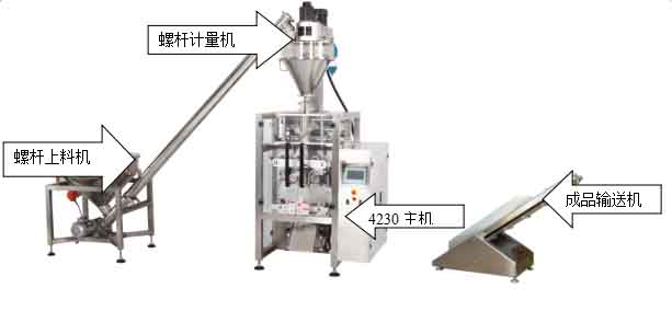 與螺桿計量機組合,可以包裝粉劑類的各種產(chǎn)品。如:面粉、生粉、豆粉、奶粉、葡萄糖粉、冰淇淋粉、胡椒粉、魚飼料粉、咖喱粉、可可粉、洗衣粉、堿粉、有機化肥等。
