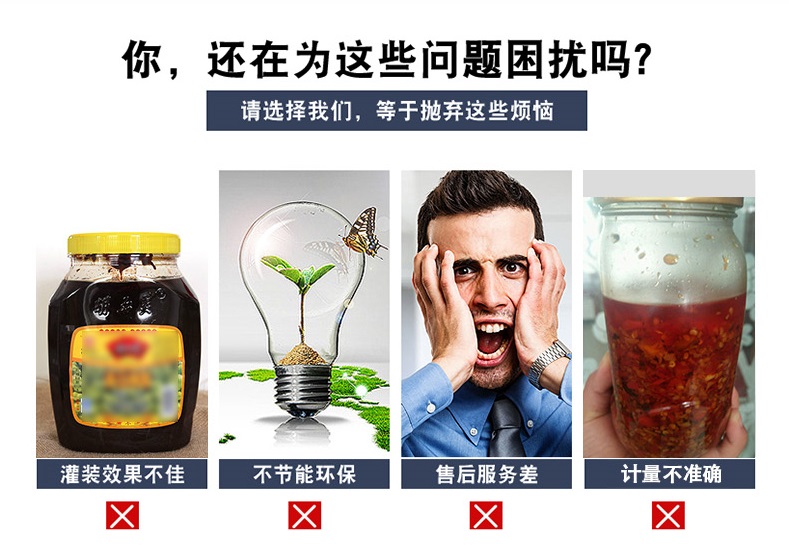 設(shè)備簡介 該生產(chǎn)線適合中小口徑三旋、四旋玻璃瓶調(diào)味醬的分裝,適合醬料、含顆粒黏稠物料的灌裝,物料接觸部分均采用316不銹鋼,整機304不銹鋼,符合食品衛(wèi)生標(biāo)準(zhǔn)。該機設(shè)計合理,機型小巧,立式結(jié)構(gòu),節(jié)省
